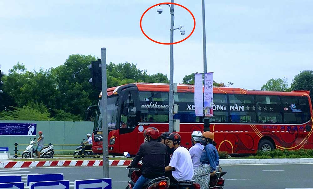 Hệ thống camera giám sát, xử phạt đường vào sân bay TP Đà Nẵng. (Ảnh: Văn Luận).